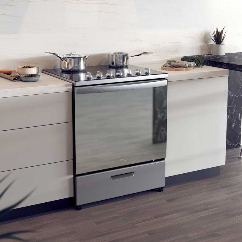 Nueva línea con Tecnología Xpert Cooking, obtén el doble de eficiencia en tiempo y energía. Diseño integral moderno, acabados uniformes, materiales resistentes y fáciles de limpiar. Cuenta con elemento Flex Dual Radiant que hierve hasta 40% más rápido, adicional, su elemento Keep Warm mantiene tus platillos calientes. Guía de cocinado en el horno, que te orienta para el mejor uso y resultados; adicional, con su función Xpert Broil&Bake, asa y hornea al mismo tiempo para acabados rostizados.