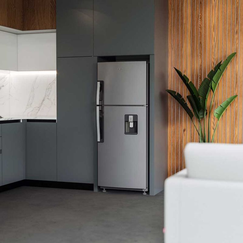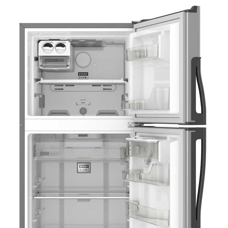 Cuenta con dispensador de agua exterior, sistema de deshielo, luz Led, compartimiento extra frío y cajón para frutas y verduras con control de humedad. Tecnología 3D de distribución de aire que mantiene los alimentos frescos por más tiempo.