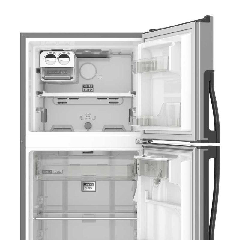 Cuenta con dispensador de agua exterior, sistema de deshielo, luz Led, compartimiento extra frío y cajón para frutas y verduras con control de humedad. Tecnología 3D de distribución de aire que mantiene los alimentos frescos por más tiempo.